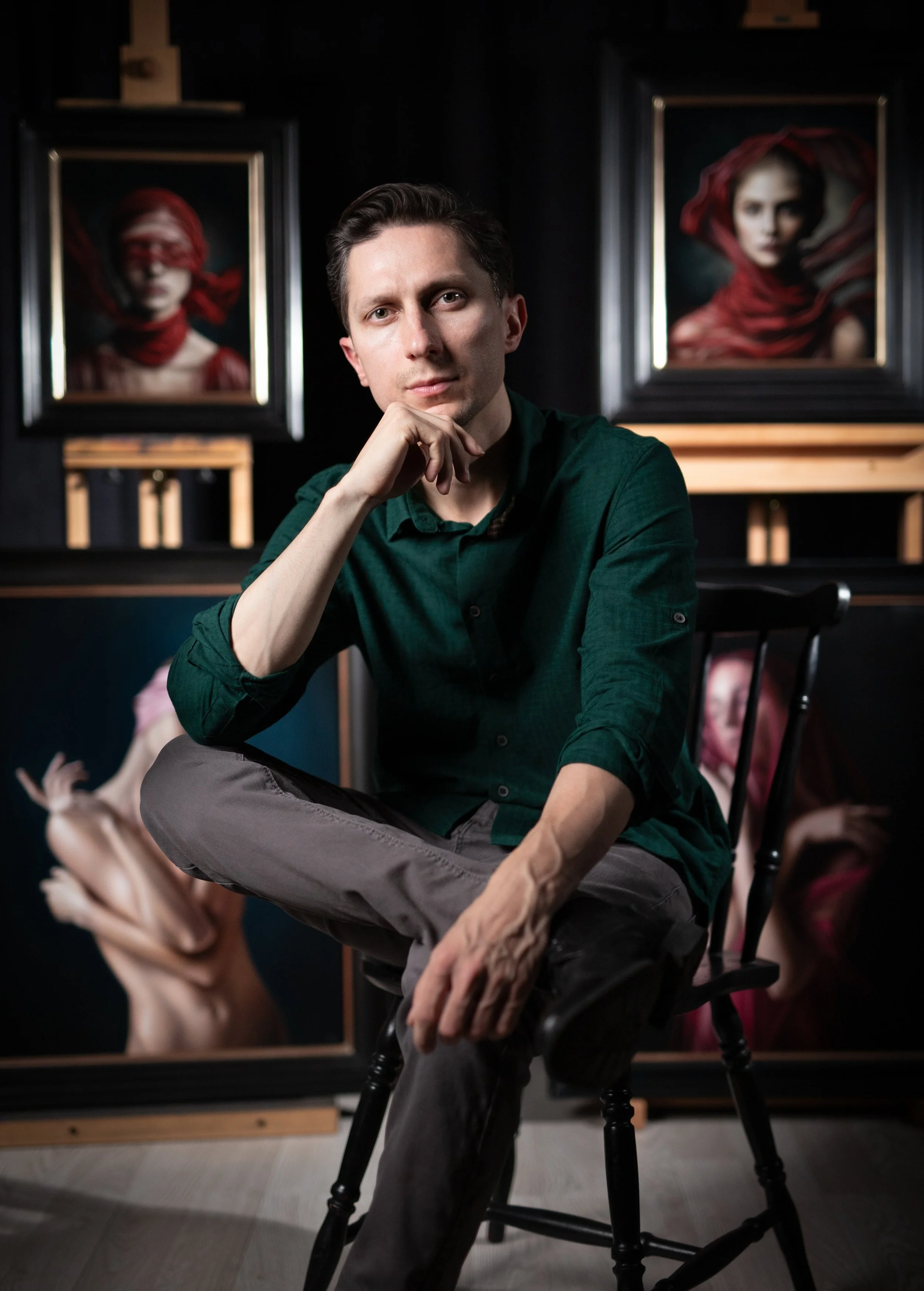 Rafal Stanula (b. 1991) is a Polish figurative painter living and working in Cracow, Poland. He is self-taught painter which took his first steps learning from such painters as Andrew Tishler, Mark Carder and Daria Callie. He has been painting professionally since 2017 and he creates his works using oil technique. He specializes in portrait painting but his imagination sometimes "pushes him" towards figurative painting with surrealist themes. Currently he is focused on the female form, creates works depicting feminine beauty accompanied by delicate nudity and a hint of mystery. In latest paintings the painter focuses on simplicity in terms of composition and color. He considers the currently chosen style and subject matter to be something he has been looking for a long time. His works find buyers among private collectors all over the world.